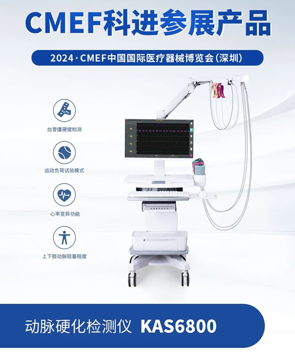 KAS6800是南京科進推出的一款動脈硬化檢測儀。設備通過測量人體PWV(脈博波傳導速度)、ABI(踝臂指數)、BAI(臂踝指數)等參數可篩查外周動脈阻塞及動脈僵硬程度。該設備操作簡單,檢測結果自動分析并提供診斷意見,可對外周動脈疾病和心腦血管疾病的發生做到早發現、早診斷、早干預。